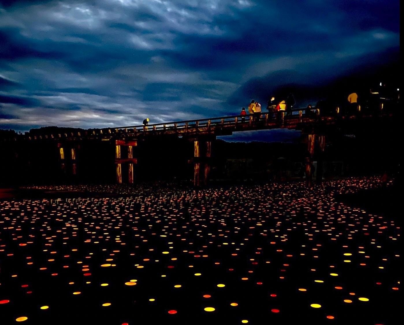 17897個もの竹あかりが蓬莱橋を照らす幻想的な景色が広がります