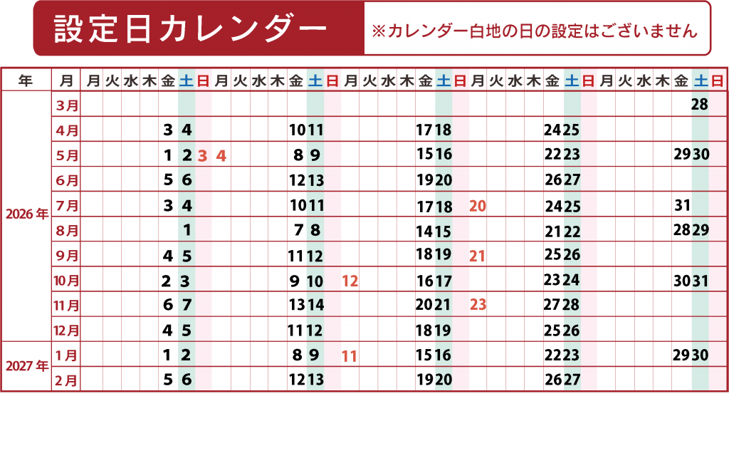 2026年3月28日(土)~2027年2月27日(土)内、104日間