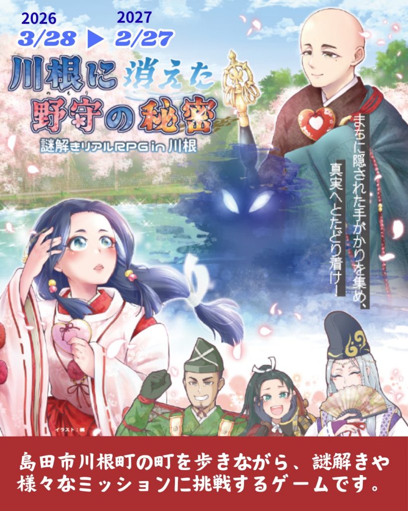 舞台は、山あいの静かな町・川根町家山。参加者は、とある僧侶から「巫女・野守が連れ去られた」という依頼を受け、町の各所に散らばる手がかりを集めて謎を解き明かしていきます。